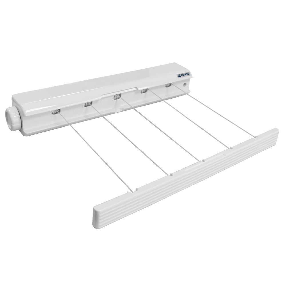 Hang eenvoudig jouw was te drogen aan deze uittrekbare waslijn: perfect voor de wasruimte of in de badkamer. De waslijn rolt gemakkelijk terug wanneer deze niet in gebruik is. De waslijn is wit van kleur en past daarom in iedere wasruimte of badkamer. De waslijn bevat 5 lijnen van 4,2 meter, wat de totale lijnlengte maar liefst 21 meter maakt! De lijn wordt geleverd inclusief metalen haken voor eenvoudige montage.