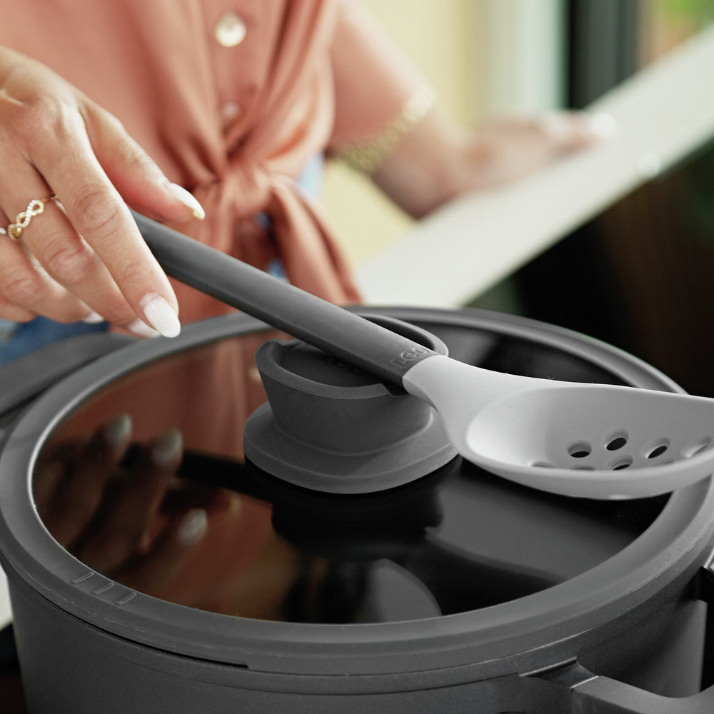 Speciale kop: Het deksel heeft een knop met een handige lepelsteunfunctie, zodat je tijdens het koken altijd je lepel bij de hand hebt.