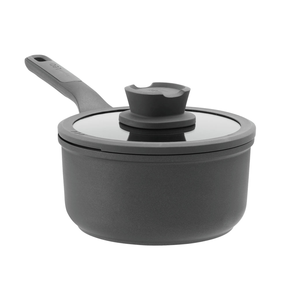 De Berghoff Stone+ steelpan Ø18 cm met deksel is een veelzijdige en duurzame keuze voor het bereiden van sauzen, soepen en kleinere gerechten. De pan heeft een moderne uitstraling en is uitgerust met een gezonde PFAS-vrije CeraGreen keramische antiaanbaklaag, wat zorgt voor moeiteloos koken en eenvoudig schoonmaken.