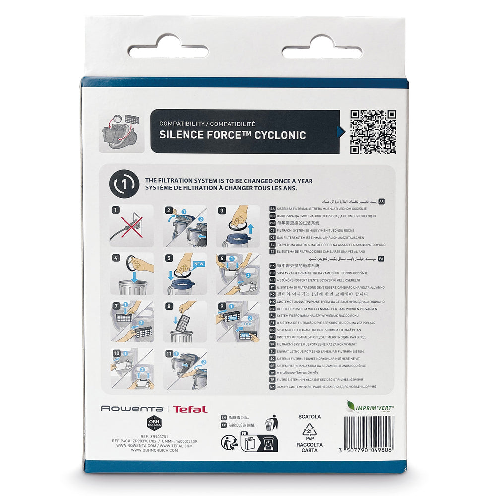 De Rowenta ZR903701 / 1600005409 filtratieset Silence Force Cyclonic 4A is de ideale aanvulling voor jouw stofzuiger, ontworpen om zowel de lucht die je inademt als de motor van je apparaat te beschermen. Deze set omvat een HEPA-filter voor het opvangen van fijne stofdeeltjes en allergenen, en een motorfilter om vuil en stof buiten de motor te houden. Voor optimale prestaties en een langere levensduur van je stofzuiger, vervang je beide filters elke 6 tot 12 maanden.