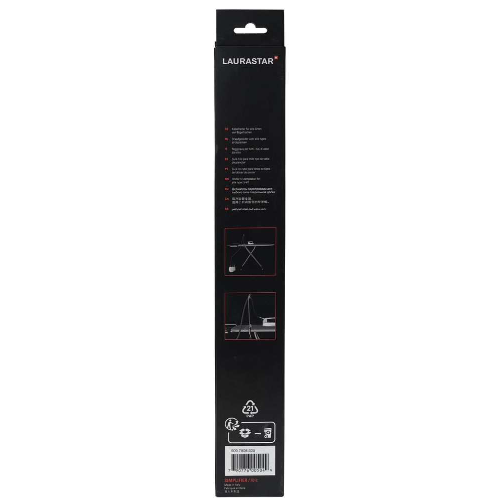 Maak strijken eenvoudiger en comfortabeler met de Laurastar draadgeleider, speciaal ontworpen om de stoomkabel soepel te leiden en hinder tijdens het strijken te voorkomen.