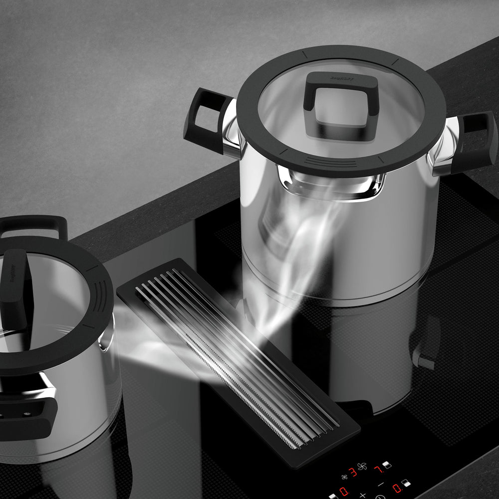 Downdraft compatibel: Geschikt voor alle kookplaten, inclusief inductie en speciaal ontworpen voor downdraft afzuigkappen en afzuigsystemen.